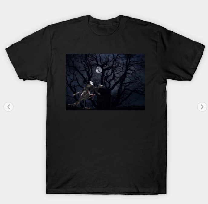 | Raven and Rat Skeleton in Moonlight - Halloween T-Shirt |